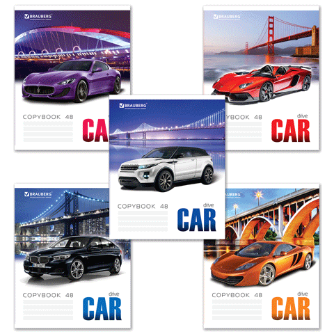 Тетрадь 48л Brauberg 402052 Pro офсет 60г/м, кл., выб. лак, Крутые тачки2 (5 видов), EAC