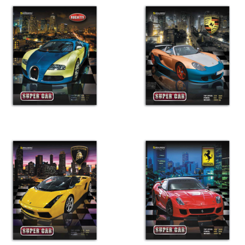 Тетрадь 48л Brauberg 401282 офсет, 60г/м, кл., обл. мел. карт., Авто (4вида), EAC
