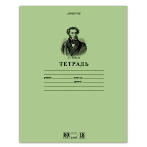 Тетрадь 18л Зелёная обложка Hatber T099476 HD, линия, обл 80г/м2, Пушкин А.С., 18Т5A2_07641