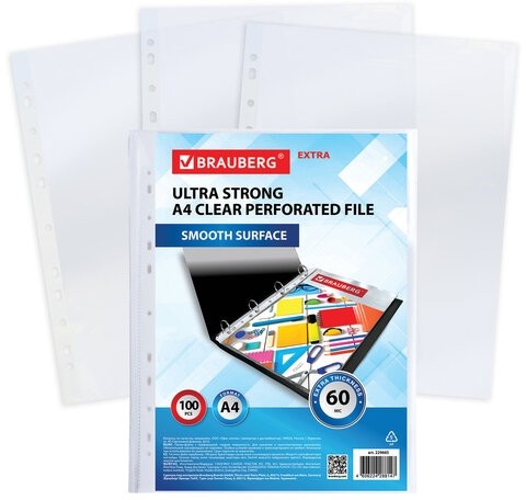 Папки-файлы перфорированные плотные А4 Brauberg "Глянцевые Exra 600" 100 шт., 60 мкм,