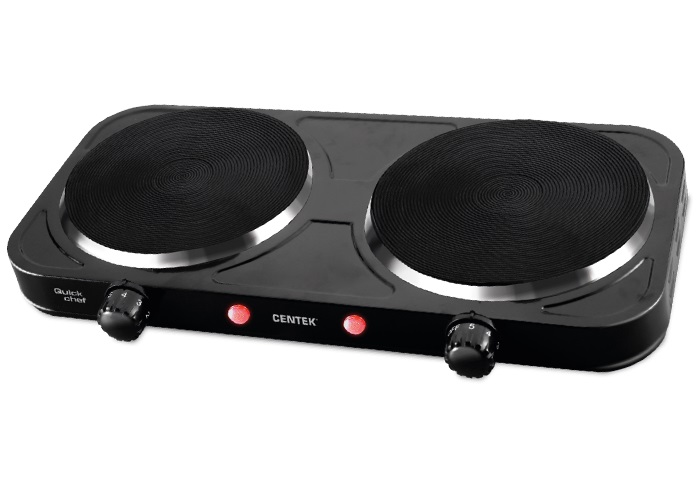 Плитка электрическая Centek CT-1507 черная 2000Вт, 2 конфорки, чугун 155мм, усиленный корпус