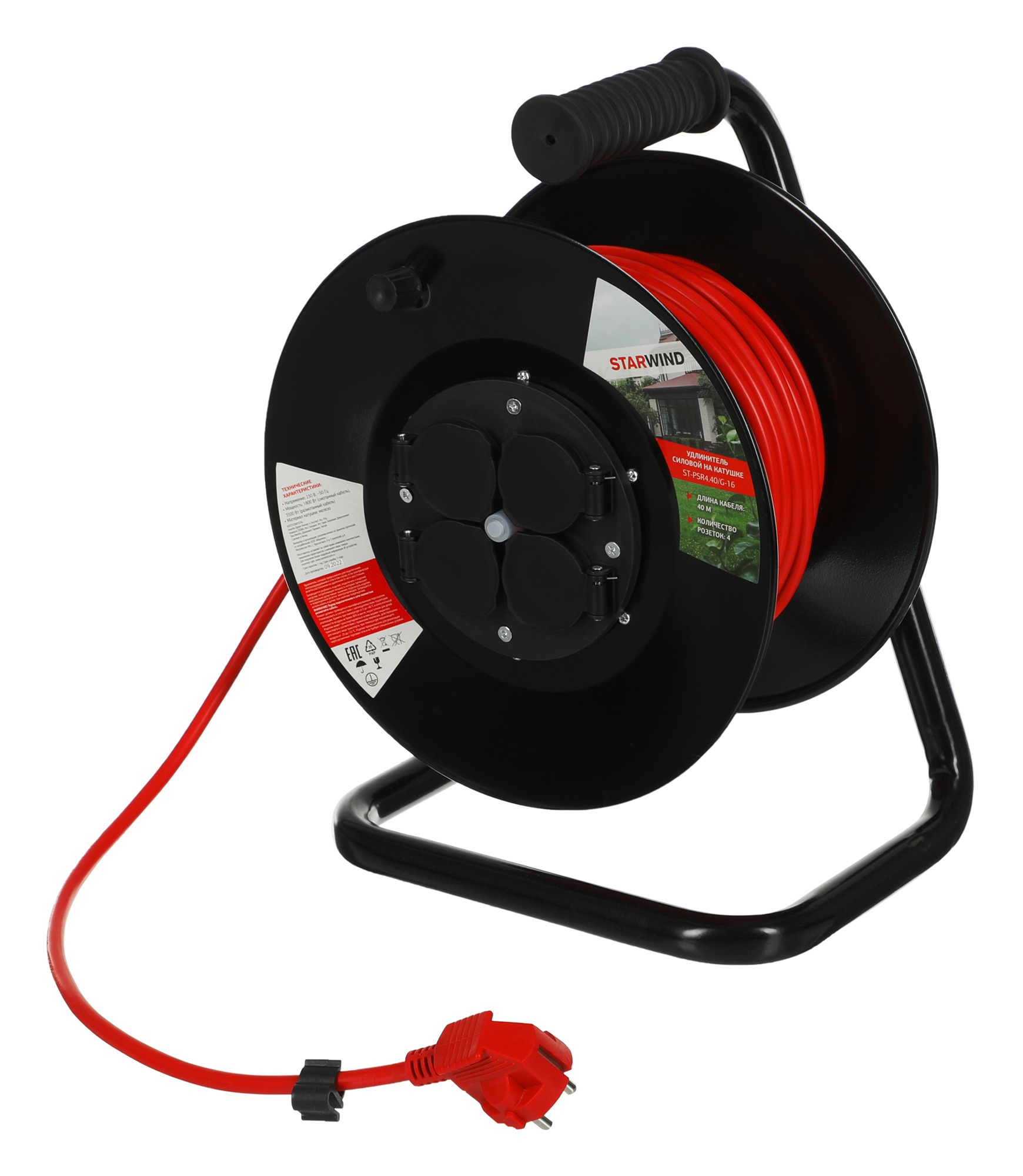 Удлинитель 40м Starwind ST-PSR4.40/G-16 3x2.0кв.мм 4 розет. ПВС 16A катушка темно-серый