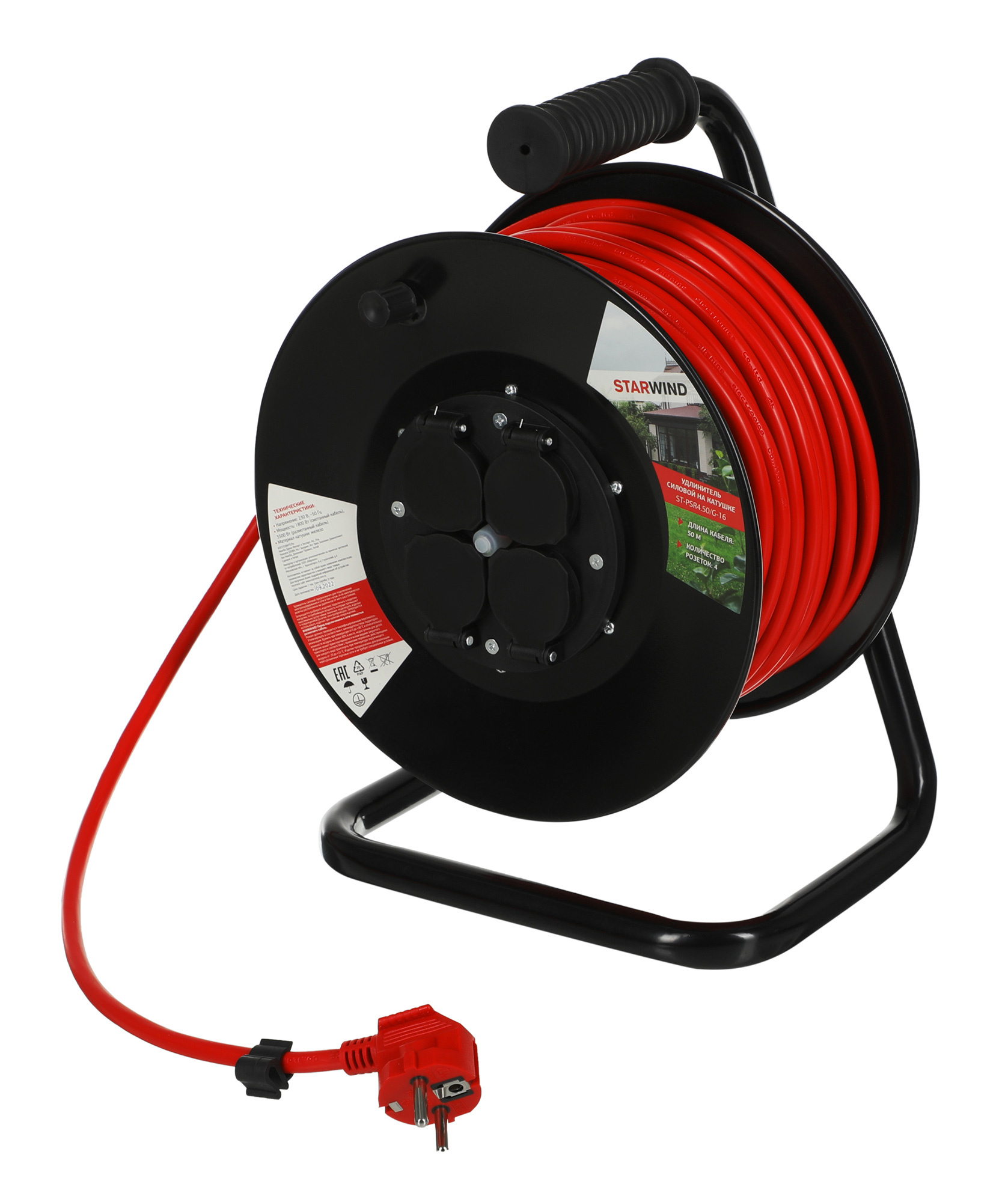 Удлинитель силовой Starwind ST-PSR4.50/G-16 3x2.5кв.мм 4 розет. 50м ПВС 16A катушка темно-серый