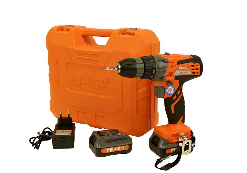 Дрель-шуруповерт аккумуляторная Союз ДШС-12К 12В, 2 акк*2Ач LiIon, 11/25Нм, 2скор, быстрая зарядка, подсветка, кейс