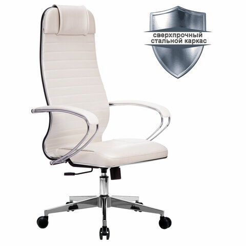 Кресло руководителя Метта К-6 белое, рецик. кожа, сиденье и спинка мягкие
