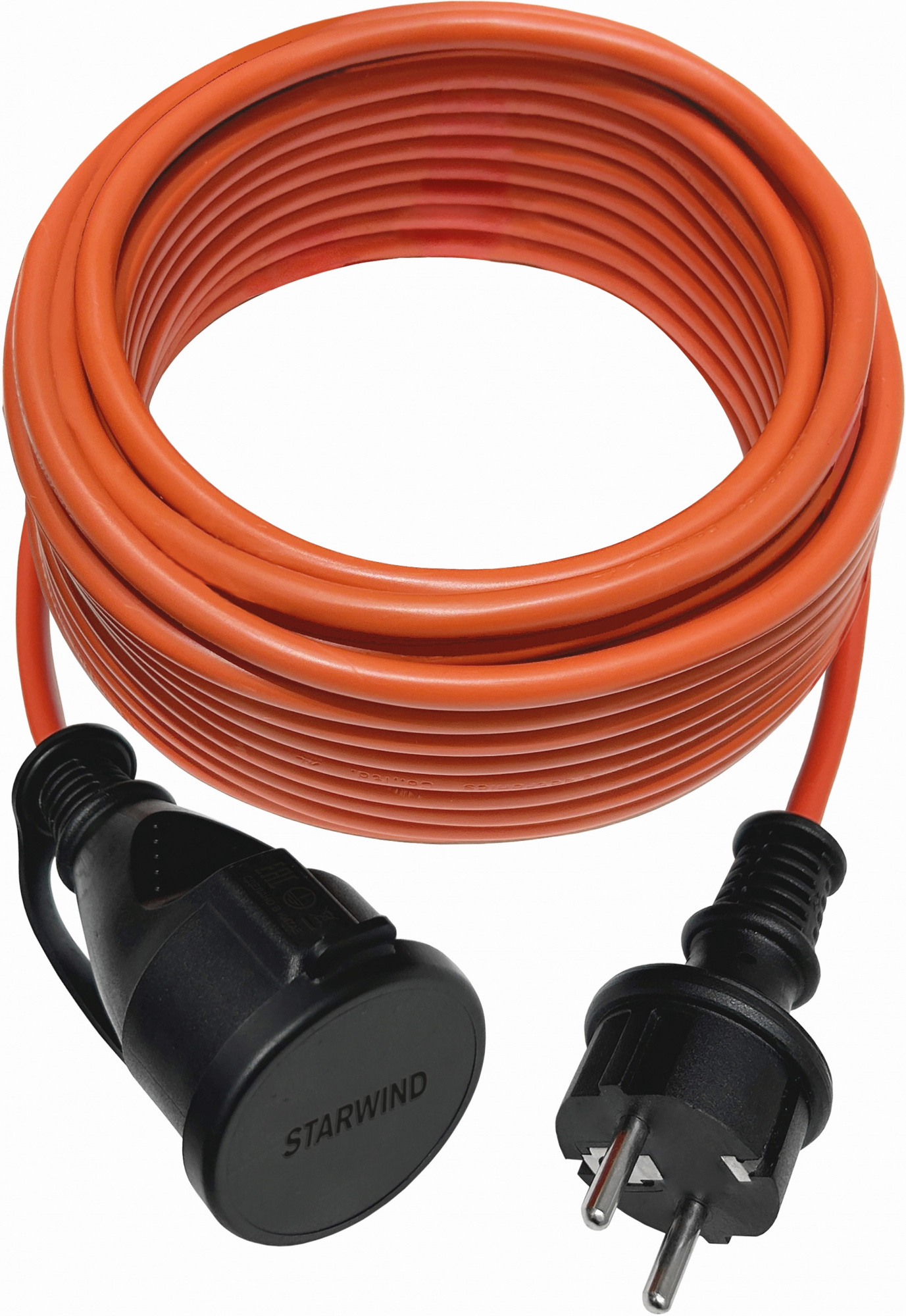 Удлинитель силовой Starwind ST-PS1.10/R 3x1.0кв.мм 1розет. 10м ПВС без катушки красный