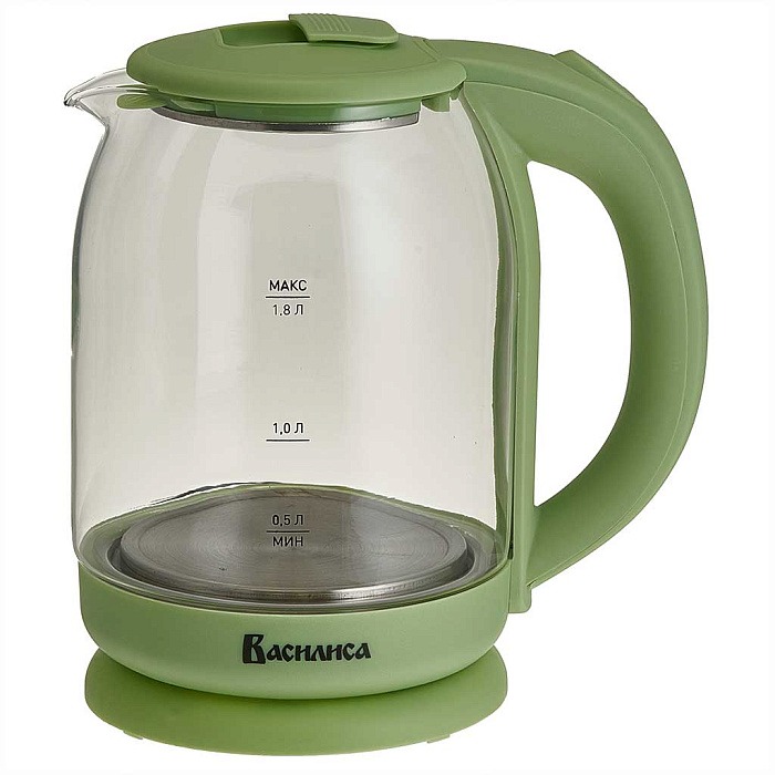 Чайник Delta Василиса ВА-1035 зеленый 1.5кВт, 1.8л ЗНЭ черный, стекло, подсветка