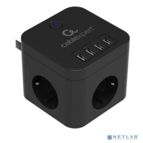 Сетевой фильтр с USB заряд. Cablexpert Cube CUBE-3-U4-B-1.5 черный, 3 розетки, 10А, 4хUSB, 1.5м