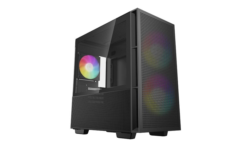 Корпус mATX без БП, Deepcool CH360 боковое окно закаленное стекло, 2x140мм ARGb LED вентилятор спереди и 1x120мм ARGb LED вентилятор сзади, черный