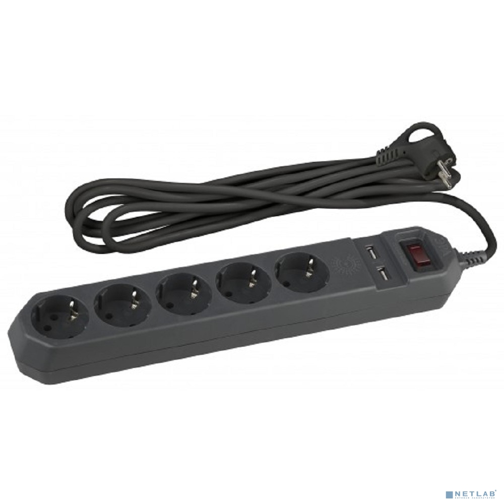 Фильтр сетевой Эра USF-5es-1.5m-USB-B Б0019036 5гн. 1.5м 2 USB-разъема черный 10А 2.2кВт с/з с выкл.ПВС