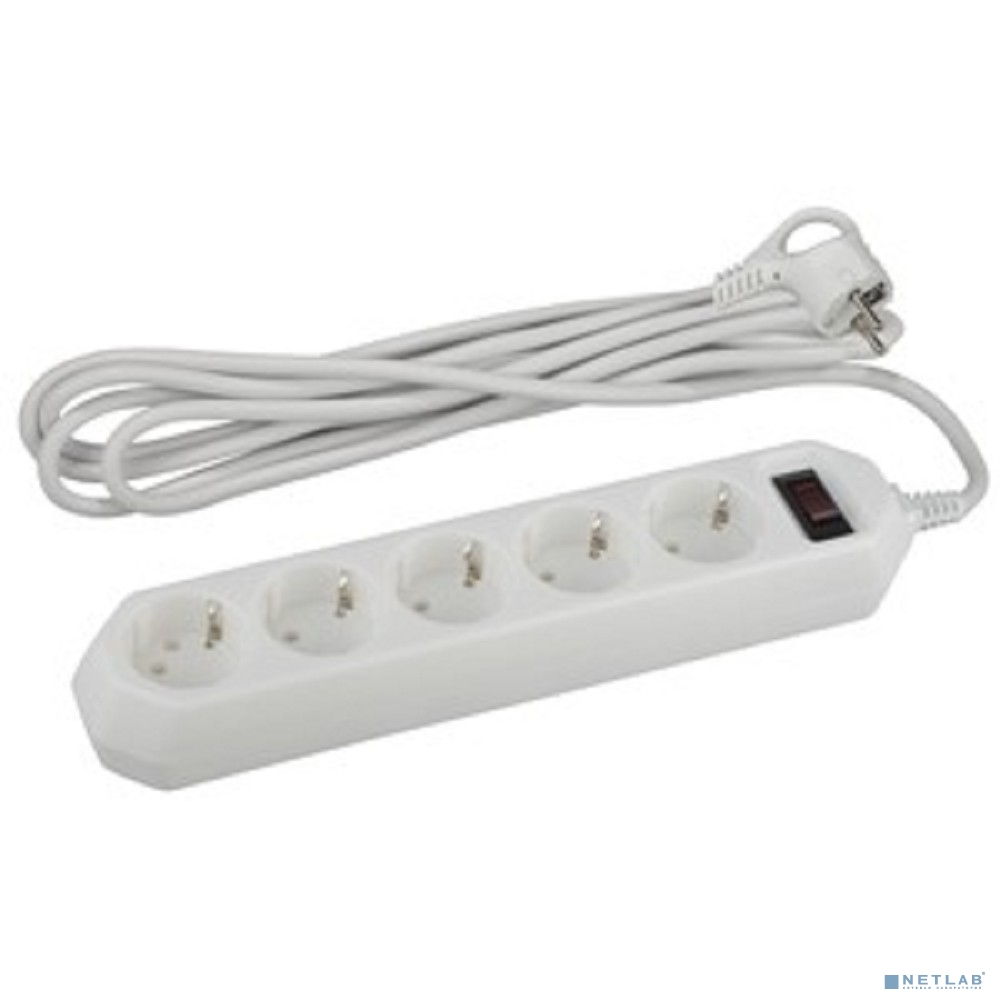 Фильтр сетевой Эра USF-5es-5m-W Б0019738 5гн. 5м белый 10А 2.2кВт 3x0.75мм2 с заземл/выкл.