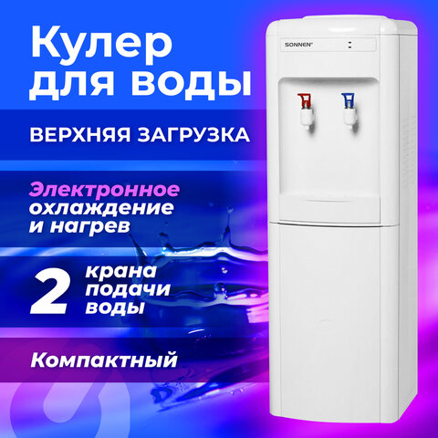 Кулер для воды Sonnen 456172 FSE-02W напольный, нагрев/охлаждение электронное, 2 крана, белый