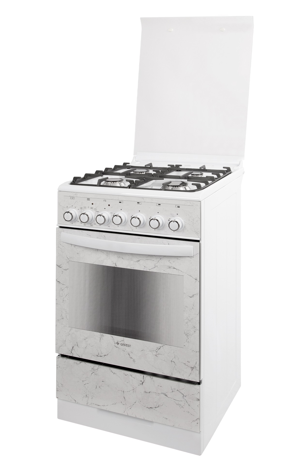 Плита комбинированная Гефест ПГЭ 5302-03 0052 белая, дизайн мрамор
