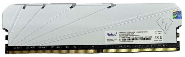Модуль памяти DDR4 16Gb 3200MHz Netac NTSSD4P32SP-16W Shadow S CL16 1.35V / / White / with radiator