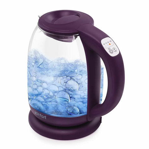 Чайник Kitfort КТ-640-5, 1.7л 2.2кВт, закрытый нагревательный элемент, терморегулятор, стекло, фиолетовый