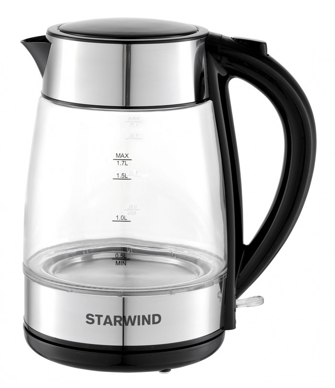 Чайник Starwind SKG3026 черн/серебр 1.7л. 2.2кВт, стекло
