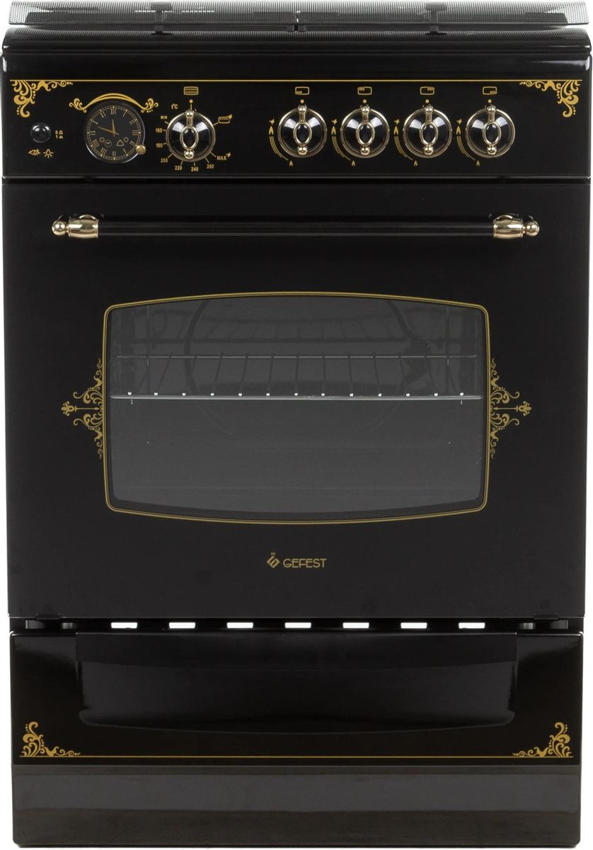 Плита газовая Гефест ПГ 6100-03 0179 черная ретро, стеклянная крышка, чугунная решётка