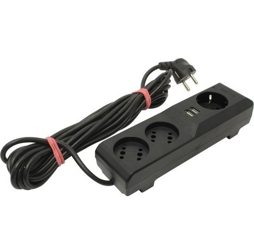 Сетевой фильтр ZIS Pilot 3G 10M Surge protector 3xGP euro outlets, 10А/2.2кВа, 2xUSB, 10m, grafit