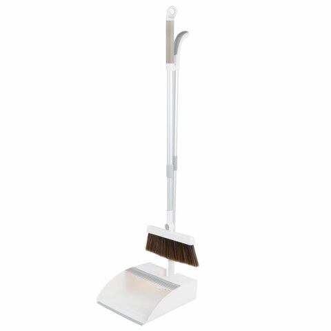 Совок для мусора Daswerk 608950 + щетка-телескоп, рукоятка 63-108 см, с магнитным креплением, бело-серый