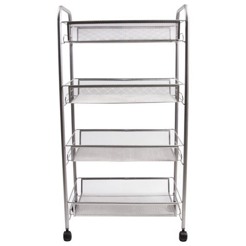 Этажерка Brabix 603754 тележка офисно-бытовая 4 яруса, на колесах, металл, серебристая, 43.5х26х83.5 см