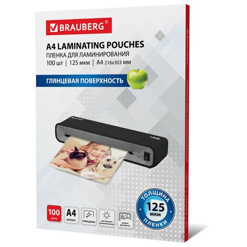 Пленки-заготовки для ламинирования Brauberg 530803 А4, комплект 100 шт, 125 мкм