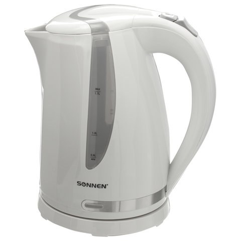 Чайник Sonnen 453414 KT-1743, 1.7 л, 2200 Вт, закрытый нагревательный элемент, пластик, белый
