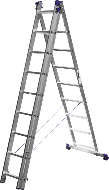 Лестница трехсекционная Сибин 38833-09 9 ступеней, со стабилизатором, алюминиевая