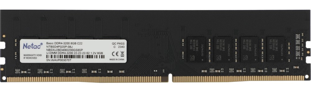 Модуль памяти DDR4 8Gb 3200MHz Netac NTbSD4P32SP-08J Basic RTL PC4-25600 CL22 DIMM 288-pin 1.2В single rank Ret