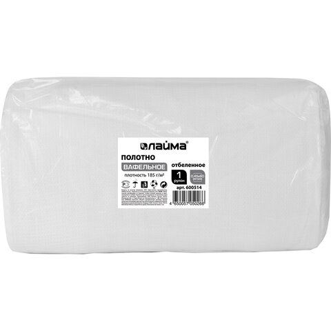 Полотно вафельное Лайма 600514 отбеленное, рулон 0.45х60 м, плотность 185 ±10 г/м2, ГС