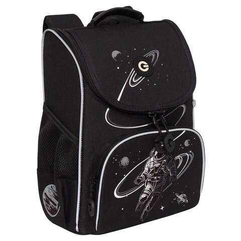 Ранец для мальчиков Grizzly RAm-585-4/1 SpaceMan Race анатомическая спинка, с мешком для обуви, 33х25х13 см