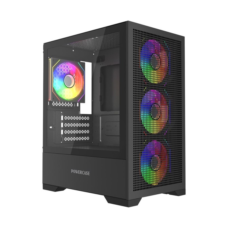 Корпус mATX Без БП Powercase CMMB315-A4 Mistral Micro B315, Tempered Glass, 4x 120мм ARGB PWM Fan, чёрный