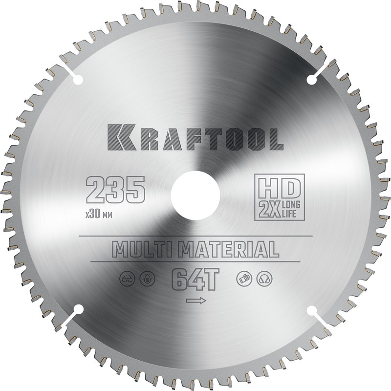 Диск пильный Kraftool 36953-235-30 Multi Material, 235 х 30мм, 64Т по алюминию