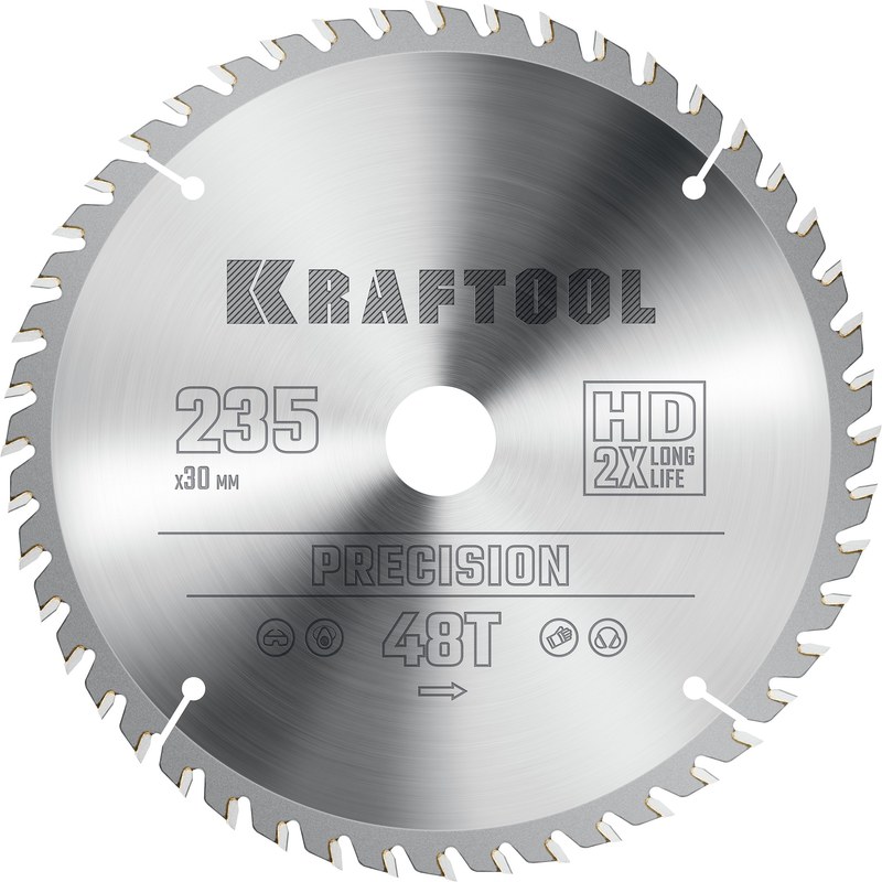 Kraftool 36952-235-30 Precision, 235 х 30мм, 48Т, пильный диск по дереву