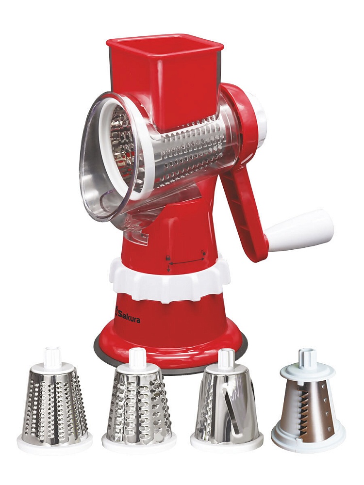 Терка - шинковка Sakura SA-VS01 R ручная красный 3 смен. барабана