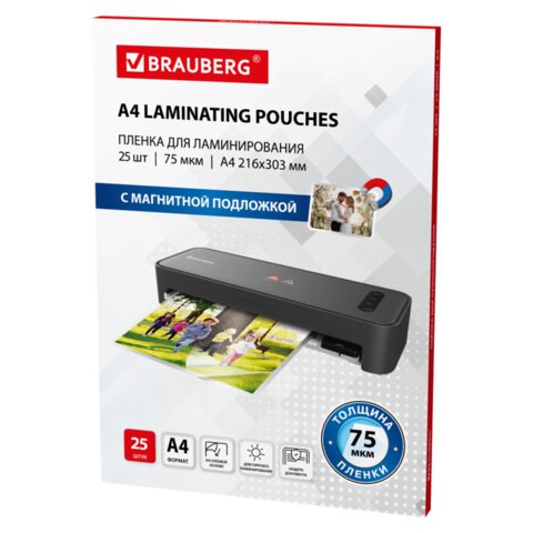 Пленки-заготовки для ламинирования Brauberg 533122 МАГНИТ А4, комплект 25 шт, 75 мкм