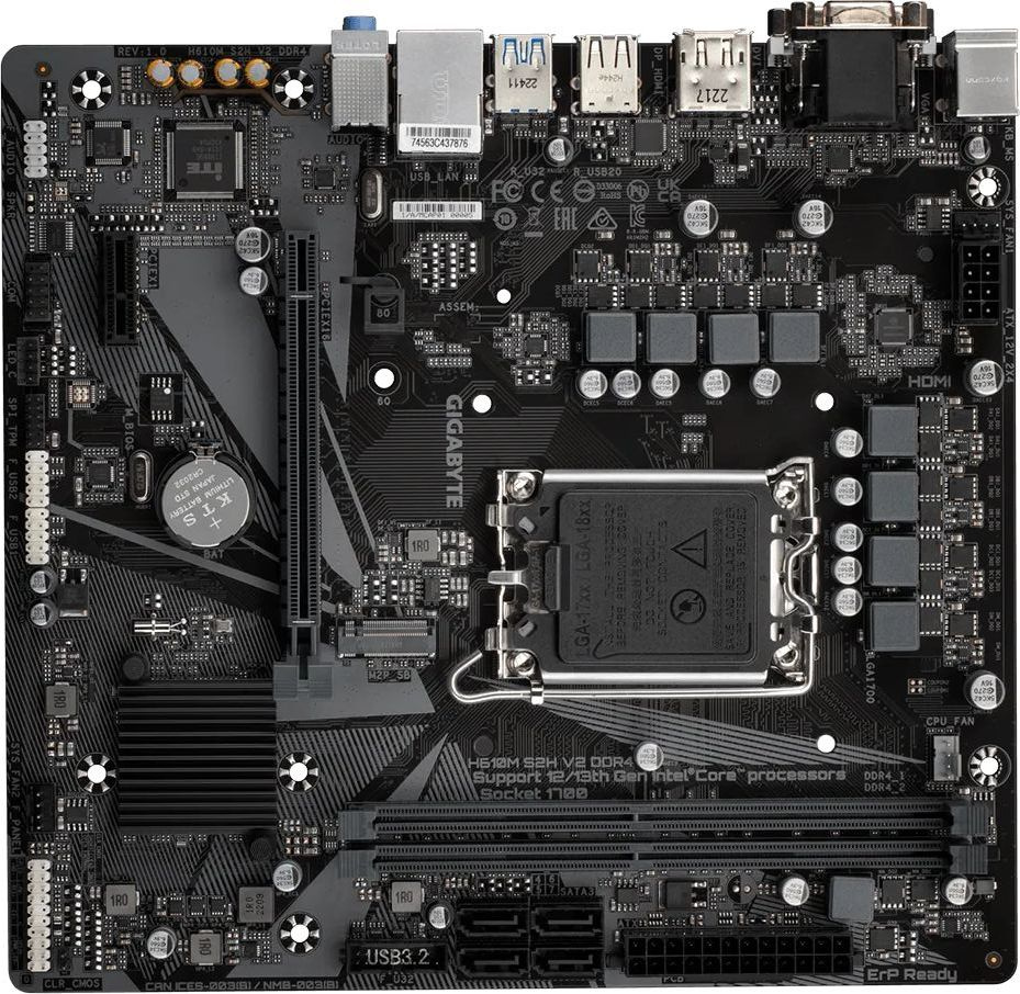 Материнская плата Socket-1700 mATX H610 Gigabyte H610M S2H V2 2xDDR5(64GB), D-SUB/HDMI 2.1/2xDP, 1xPCIe 4.0x16, 1xPCIe 3.0, 1xLAN, 4xSATA 6Gb/s, 1xM.2, 2xUSB 3.2, 4xUSB 2.0, 1xPS/2