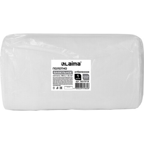 Полотно вафельное Лайма 607519 отбеленное, рулон 0.45х50 м, плотность 180 ±5 г/м2, в пакете