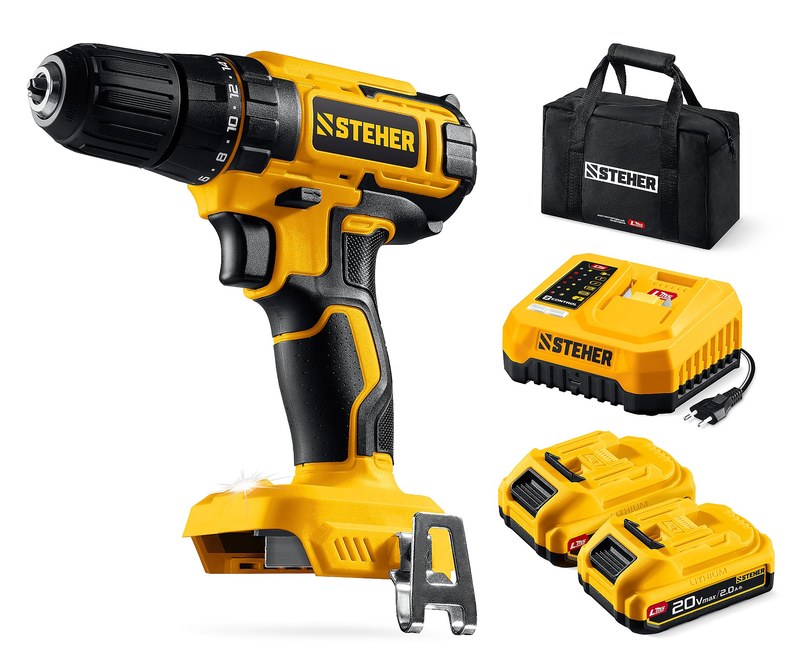 Дрель-шуруповерт аккумуляторная Steher CD-40-22 20 В, 40 Н·м, 2 АКБ LMS 2 А·ч, сумка