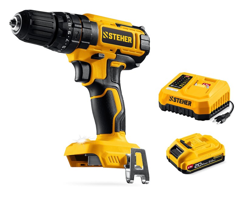 Дрель-шуруповерт аккумуляторная Steher CDS-40-21 20 В, 40 Н·м, 1 АКБ LMS 2 А·ч, ударная