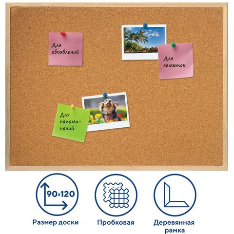 Доска пробковая для объявлений Brauberg 236861 90х120см, деревянная рамка