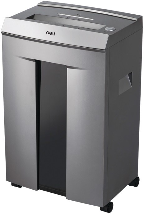 Шредер Deli 9905 серый с автоподачей секр.P-5 фрагменты 10лист. 20лтр. скрепки скобы пл.карты CD