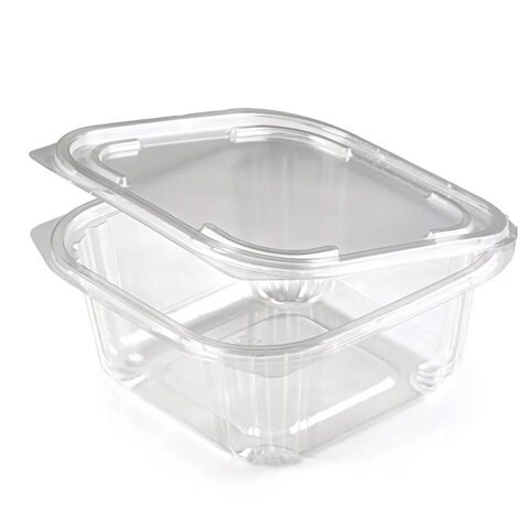 Контейнер одноразовый Юпласт ЮУПМ6132 квадратный 500 мл, с крышкой ЮП-РКСП, комплект 400 шт, прозрачный ПЭТ