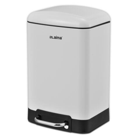 Ведро для мусора Лайма 701569 Ultra с педалью 6 л, крышка с доводчиком, белое матовое, металл