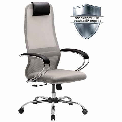 Кресло офисное Метта SU-B-8 хром, ткань-сетка, сиденье мягкое, светло-серое