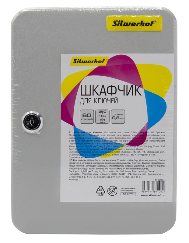 Шкафчик для ключей Silwerhof на 60ключ. 250х180х80мм комппл.60 брелков серый металл