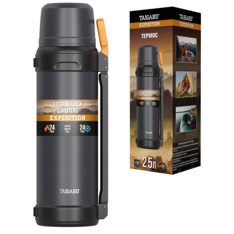 Термос 2.5л TAIGARU 700318 EXPEdition, нержавеющая сталь SUS304, 2 кружки, 2 ручки, ситечко, графитовый