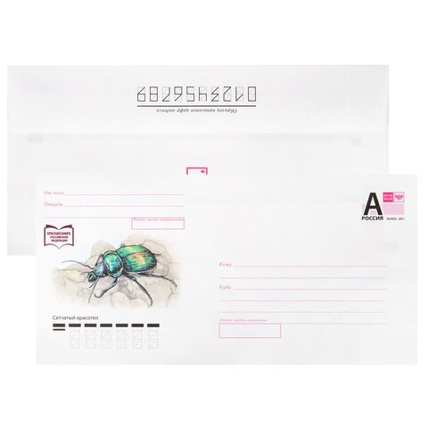 Конверты маркированные Почта России 881005 литера А, E65 110х220мм, отрывная лента Куда-Кому, 80 г/м2, комплект 50 шт