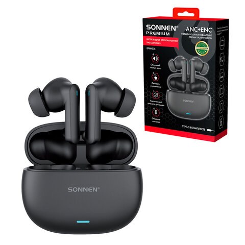 Наушники Sonnen 514123 Premium EP-BH33B TWS внутриканальные, гибридное шумоподавление ANC + ENC, Bluetooth 5.3, черные