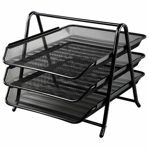 Лоток для бумаг горизонтальный Brauberg 231952 Germanium, A4 267х355х295мм, металлический черный 3 секции