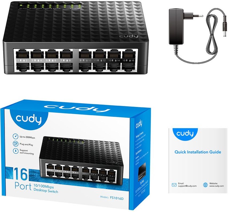 Коммутатор Cudy 16-Port 10/100 Mbps Metal Switch 16-Port 10/100 Mbps Switch, 16 10/100 Mbps RJ45 Ports, Switch/VLAN/Extend working mode DIP switch, Rack-mountable Steel Case, Power Saving, Plug & Play, Rack-Mount kits included